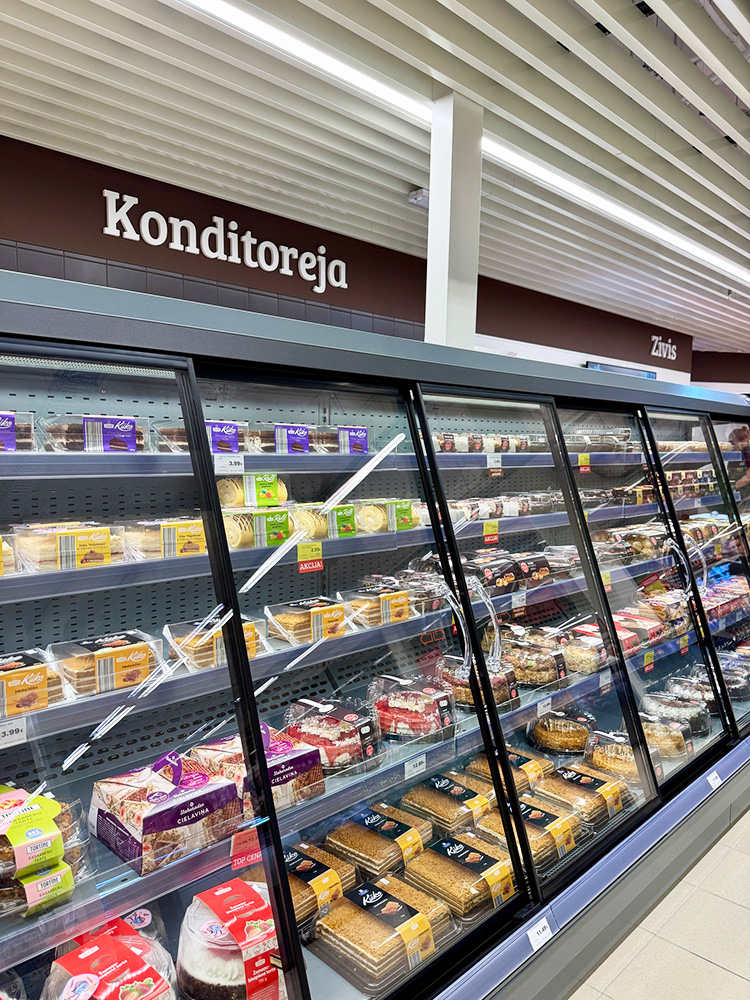 VVN komanda aprīkoja arī veikala konditorejas un kulinārijas nodaļas, nodrošinot funkcionālus risinājumus svaigi ceptu izstrādājumu un gatavo ēdienu izlikšanai. Šīs nodaļas ir būtiska veikala identitātes daļa, jo TOP tīkls lepojas ar saviem uz vietas gatavojamiem produktiem.