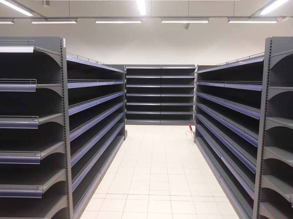 Veikala iekārtojumā izmantotas mūsdienīgas veikalu plauktu sistēmas, kas nodrošina optimālu preču izvietojumu un maksimāli efektīvu telpas izmantošanu. Plaukti ir pielāgoti dažādu produktu kategoriju vajadzībām – no konservu un sausā sortimenta līdz augļu un dārzeņu nodaļām. Īpaši risinājumi tika izstrādāti gaļas un zivju sekcijām, kur nepieciešams profesionāls aprīkojums svaigo produktu glabāšanai un prezentācijai.