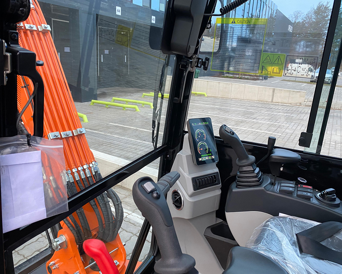 Interjeru papildina skārienjūtīgs 4,2 collu monitors ar reāllaika diagnostiku, klimata kontroles sistēma un ergonomiskas sviras ar precīzu vadību. Latvijā, kur vasarā temperatūra kabīnē bez gaisa kondicionēšanas var sasniegt 40 °C, šī iespēja ir kritiski svarīga.