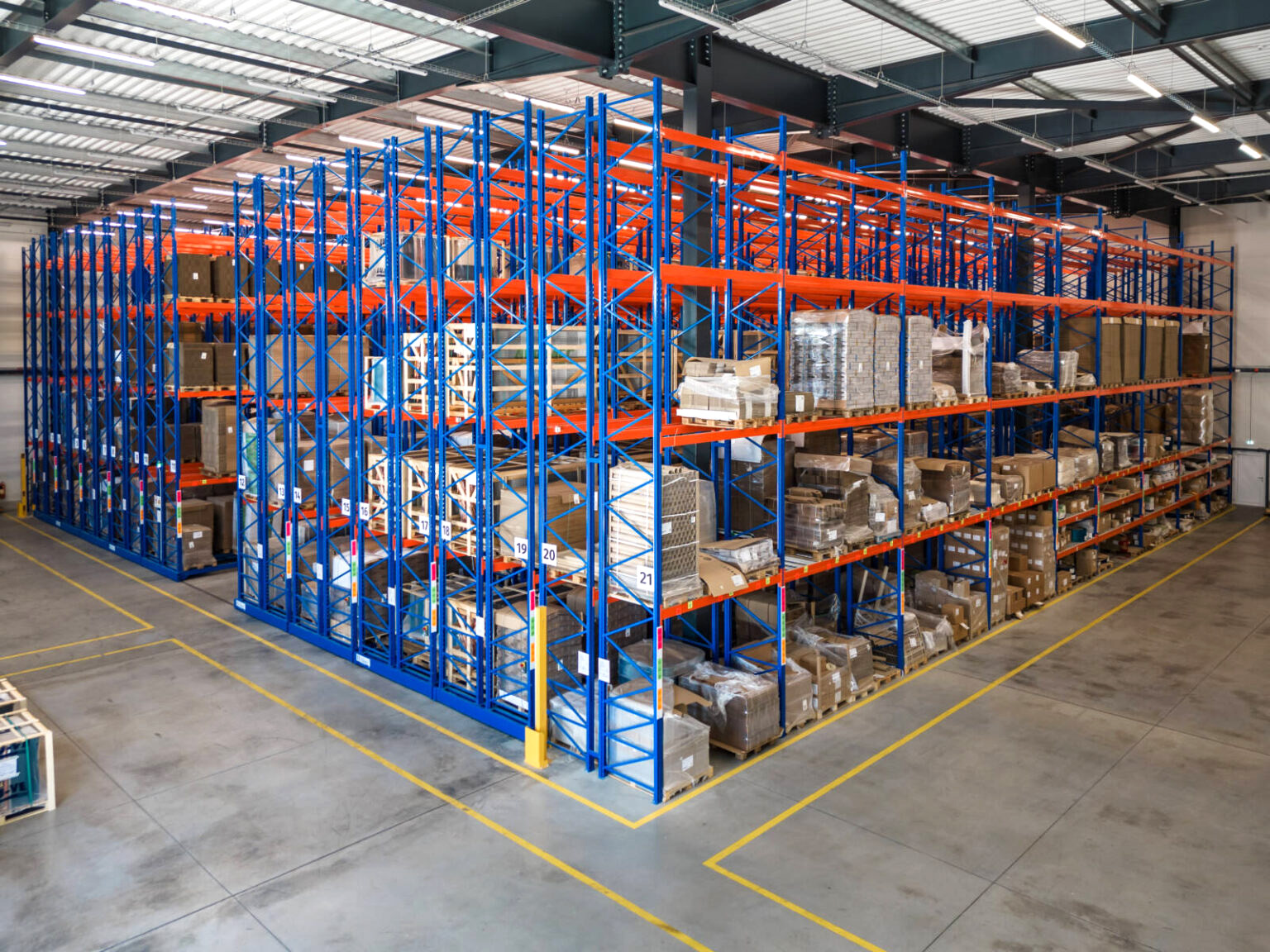Производственные предприятия с большим объёмом однородной или схожей продукции — например, производители продуктов питания, напитков, химикатов или упаковочных материалов — нередко хранят на складе большое количество одного или нескольких SKU при высоком общем числе поддонов. Такой профиль SKU идеально подходит для системы мобильных стеллажей.