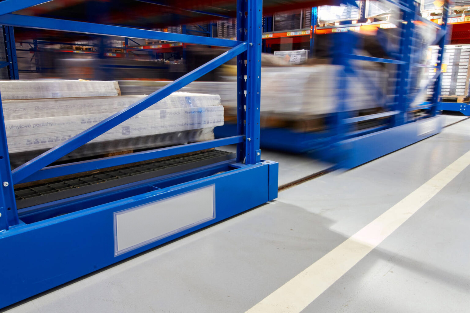 Встроенные в пол рельсы являются ключевым элементом проекта, что требует тщательного планирования как в новых складах (где рельсы закладываются в бетонный пол во время строительства), так и в существующих помещениях (где выполняется точная фрезеровка пола). В обоих случаях несущая способность пола должна соответствовать нагрузкам мобильной системы — этот аспект проверяется специалистами VVN на этапе планирования проекта.